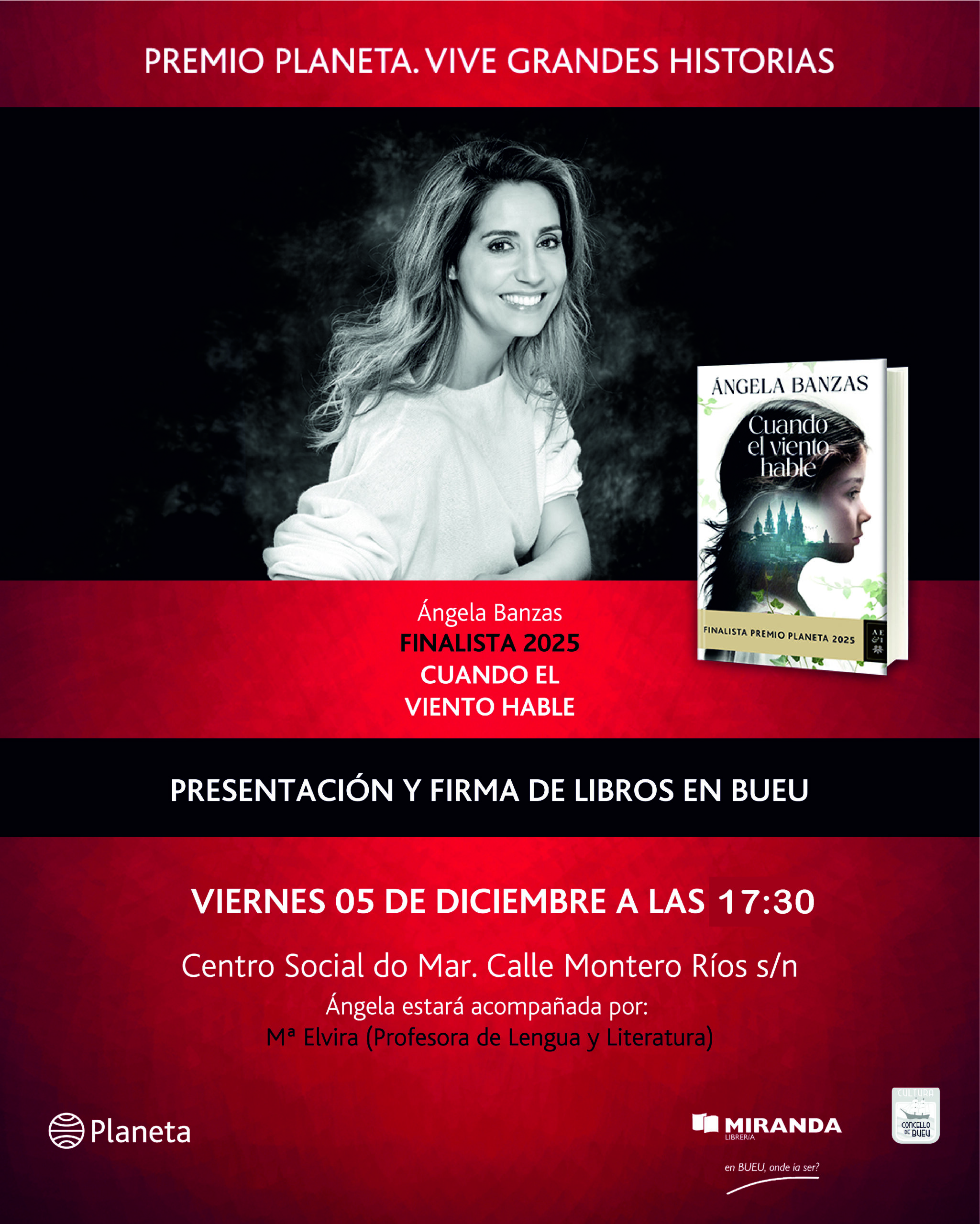 A Libraría Miranda organiza a presentación do libro Cuando el viento hable, de Ángela Banzas, que terá lugar ás 17.30 horas no Centro Social do Mar.